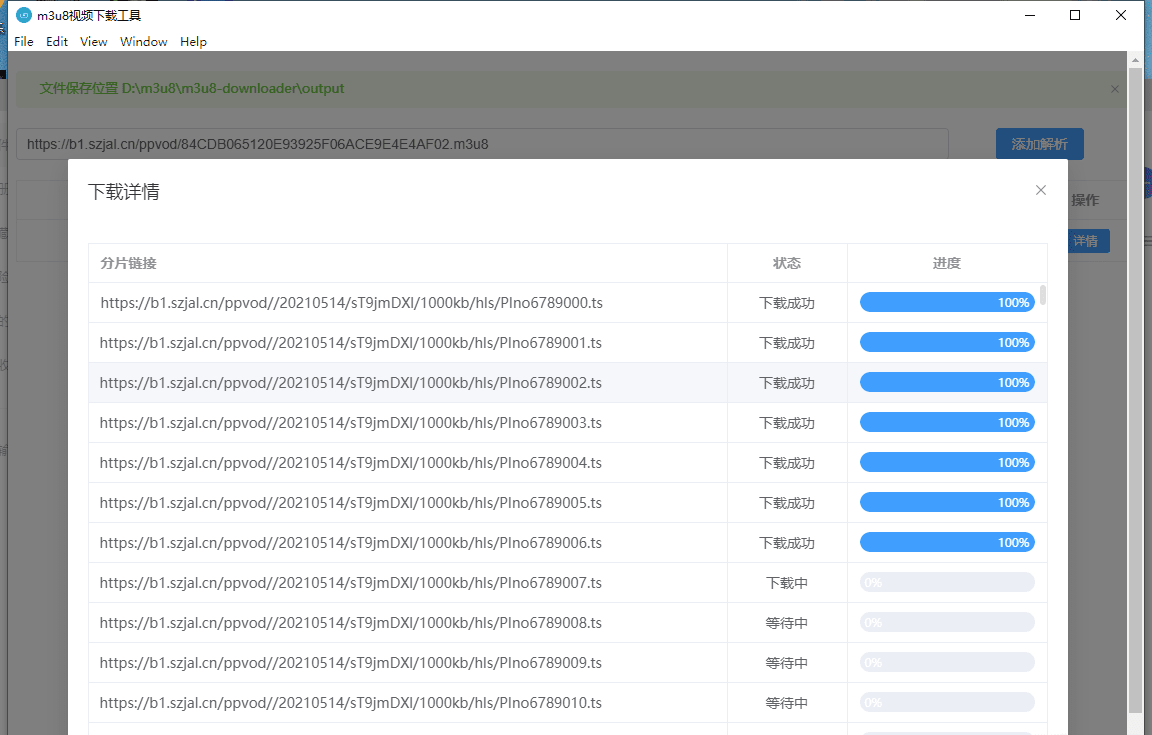 改版本是一个可视化工具,打开工具之后 输入m3u8链接 即可自动解析ts文件并且下载 合并