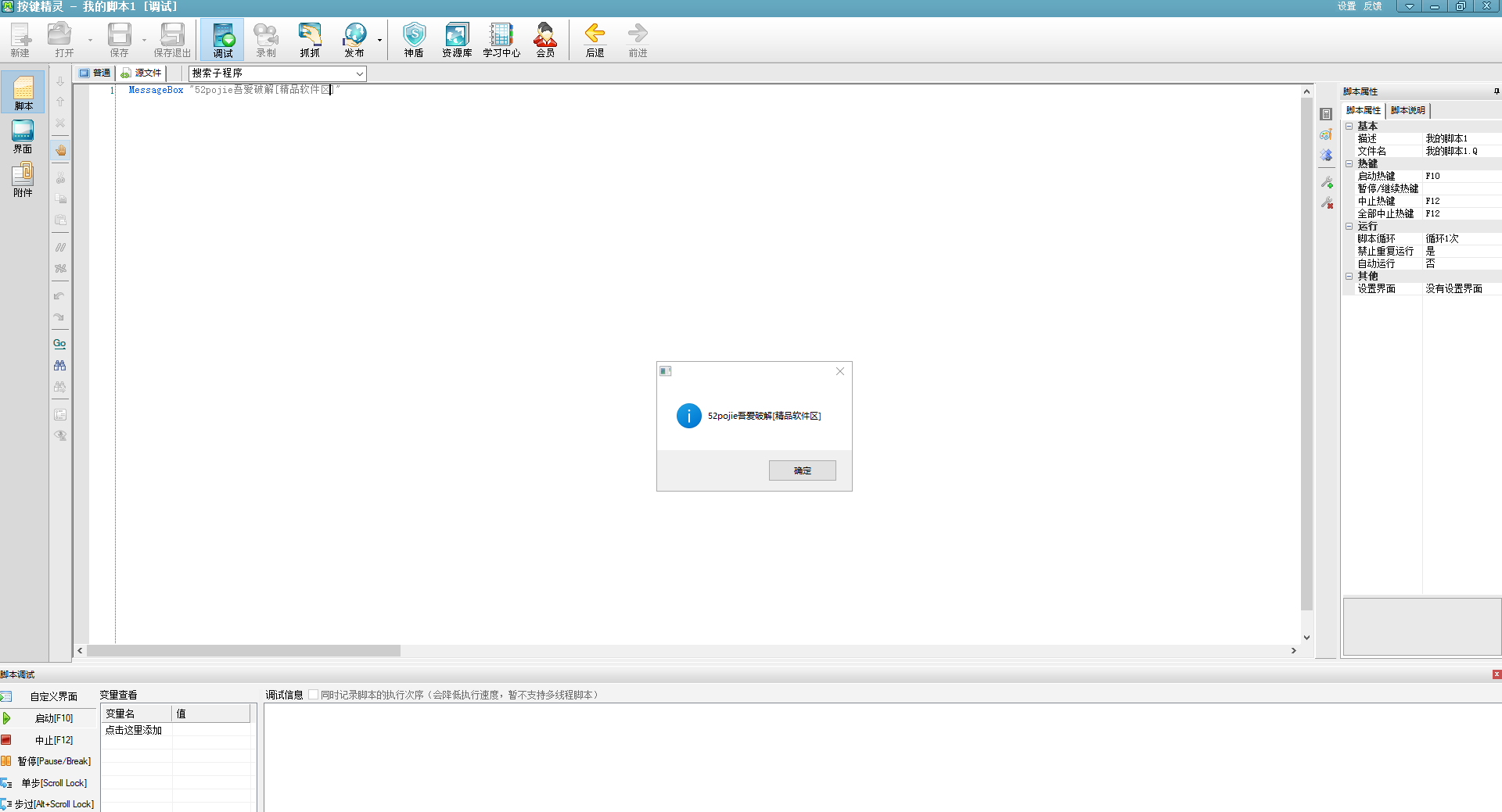 1.操作简单,非常容易上手,适合无变成经验的小白编程人员;2.功能强大,脚本语句丰富,并有强大的录制键鼠操作的功能;3.界面友好,提供多界面编辑功能,使用鼠标就可以完成大部分的脚本的制作动作;4.提供写脚本向导、命令库加密、云脚本储存等人性化功能;5.兼容性好,支持大部分Windows下的软件;6.内置资源库,提供热门插件、命令库等资源下载;7.拥有“神盾”保护功能。