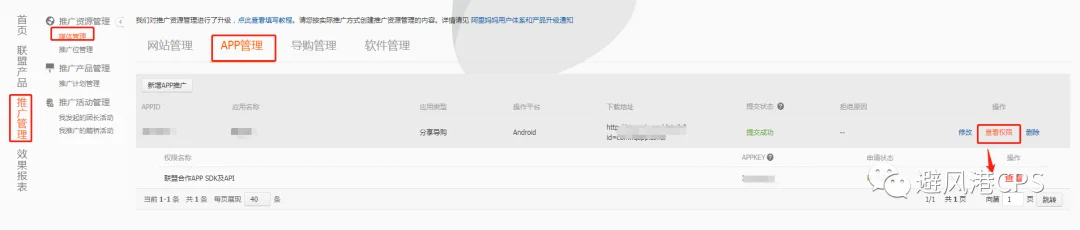 2,已经有APPKey权限后,点击查看–进入阿里淘宝开放平台–进入该应用管理