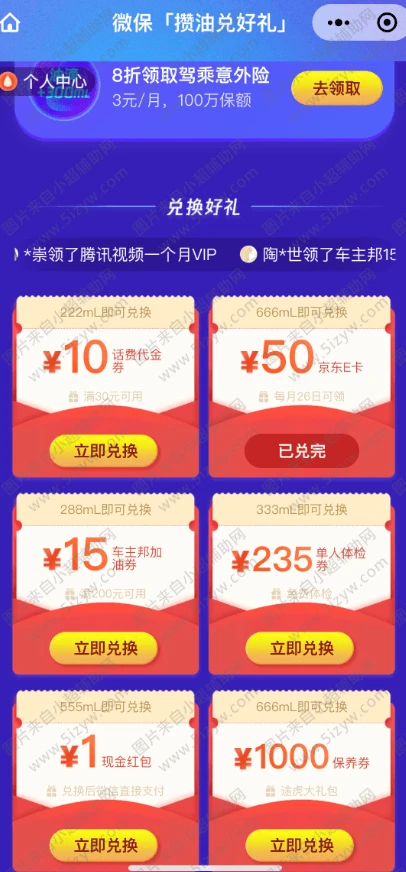 1、微信小程序搜索:“微保”拉到最下面点开活动中心-点击 更多>再点击天天攒油兑好礼